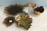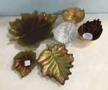Colorful Glass Leaf Dishes, 6 piece glass dishes, largest is 12". Colorful Glass Leaf Dishes, 6 piece glass dishes, largest is 12".