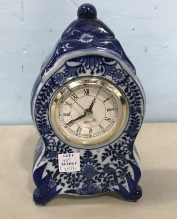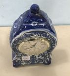 Modern Blue and White Porcelain Mantle Clock, French Style, battery operated movement, 10"h. Modern Blue and White Porcelain Mantle Clock, French Style, battery operated movement, 10"h.