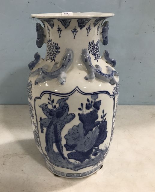 Chinese Antique Replica Blue and White Lizard Vase, porcelain, 14"h., 7"w. Chinese Antique Replica Blue and White Lizard Vase, porcelain, 14"h., 7"w.