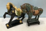 Modern Oriental Pottery Horse Decor, hand painted, one with wood stand, 12". Modern Oriental Pottery Horse Decor, hand painted, one with wood stand, 12".