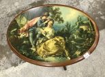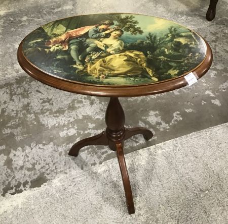 Modern Tilt Top Pedestal Table, with portrait scene top, 25"h. 20"w. Modern Tilt Top Pedestal Table, with portrait scene top, 25"h. 20"w.