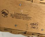 Longaberger Christmas Sleigh Basket, with metal base, label on bottom, good condition, 7"h., 10"w. Longaberger Christmas Sleigh Basket, with metal base, label on bottom, good condition, 7"h., 10"w.