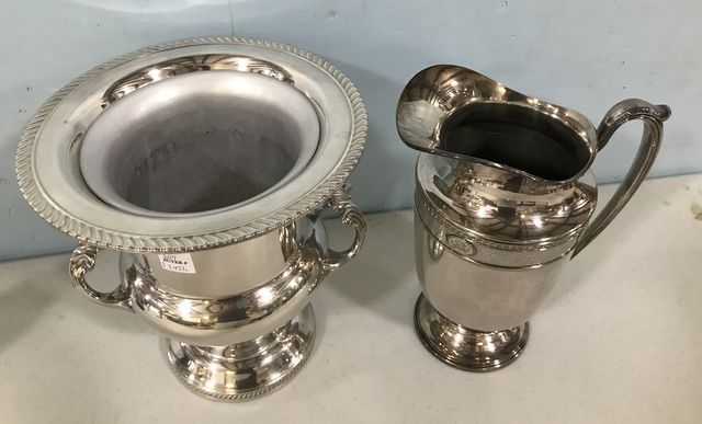 607 Silver Plate Wine Cooler and International Silver Plate Bourdeaux Pitcher