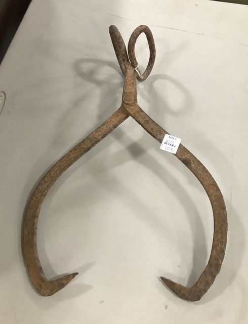 Primitive Iron Ice Tongs, rusted condition, 16"h. Primitive Iron Ice Tongs, rusted condition, 16"h.