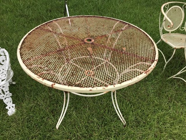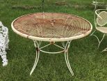 White Wrought Iron Patio Table, diamond pattern, weather wear. White Wrought Iron Patio Table, diamond pattern, weather wear.