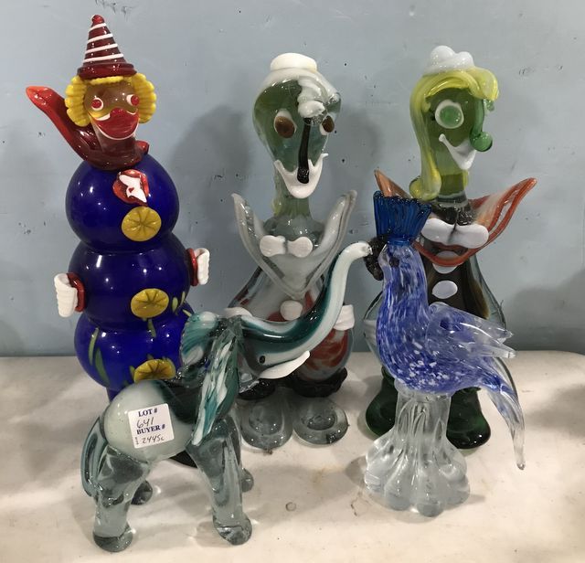 641 Hand Blown Art Glass Clowns, Elephant, and Bird