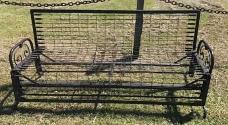 Painted Black Iron Adjustable Futon Couch, fold out to full size bed, just frame no mattress. Painted Black Iron Adjustable Futon Couch, fold out to full size bed, just frame no mattress.
