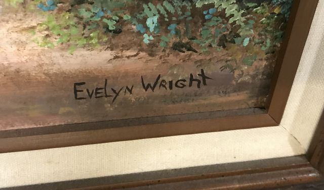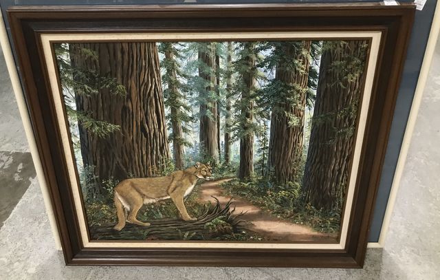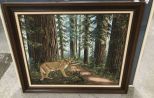 Painting of Cougar by Evelyn Wright, on canvas, framed, 30"h., 36"w. Painting of Cougar by Evelyn Wright, on canvas, framed, 30"h., 36"w.