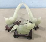 Oriental Jade Like Figurines, three carved animals with wood stands, 4"h. Oriental Jade Like Figurines, three carved animals with wood stands, 4"h.