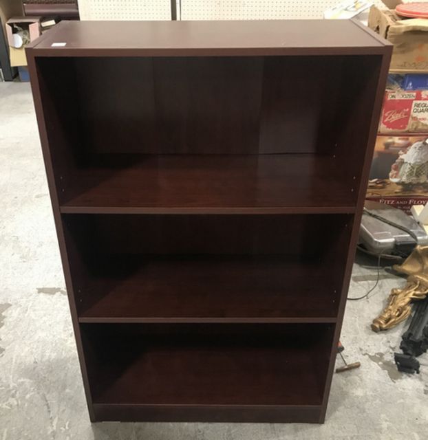 Modern Cherry Pressed Wood Bookcase, two shelves, good condition, 44"h., 28"w., 12"d. Modern Cherry Pressed Wood Bookcase, two shelves, good condition, 44"h., 28"w., 12"d.