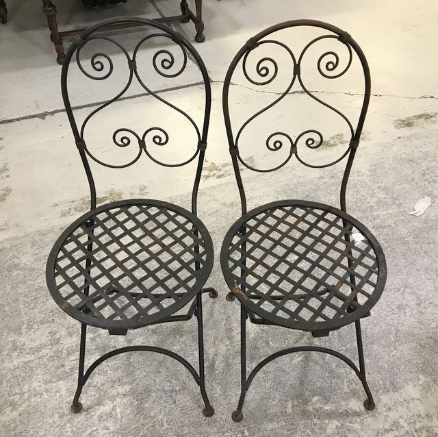 Two Iron Fold Out Patio Chairs, good condition, 36"h. Two Iron Fold Out Patio Chairs, good condition, 36"h.