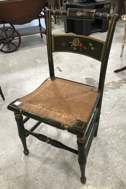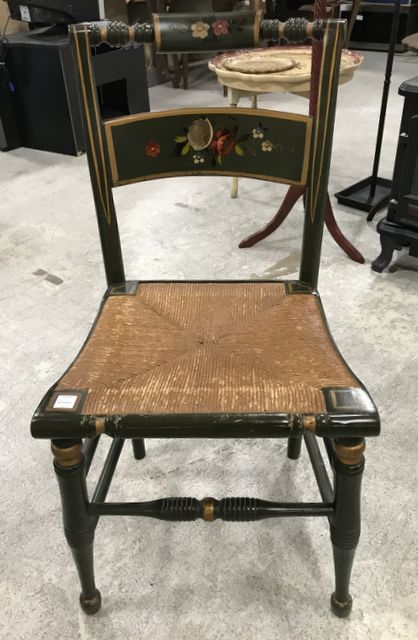 High Point Bending And Chair Company Hitchcock Style Side Chair, painted with stencil floral designs, woven seat, 33"h High Point Bending And Chair Company Hitchcock Style Side Chair, painted with stencil floral designs, woven seat, 33"h