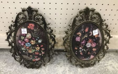 762 Pair for Ornate Metal Framed Still Life Prints