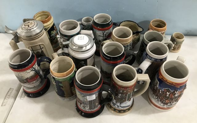 Collection of Souvenir Beer Steins, 18 steins total. Collection of Souvenir Beer Steins, 18 steins total.