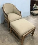 Bent Bamboo Arm Chair and Ottoman, has cushions, bamboo has wear, 33"h. Bent Bamboo Arm Chair and Ottoman, has cushions, bamboo has wear, 33"h.