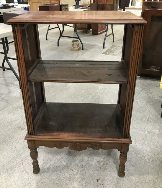 Vintage Radio Cabinet Converted Display, one shelf, gutted radio cabinet converted display cabinet, has wear, 39"h., 24"w., 13"d. Vintage Radio Cabinet Converted Display, one shelf, gutted radio cabinet converted display cabinet, has wear, 39"h., 24"w., 13"d.