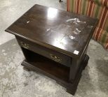 Pennsylvania House Cherry Night Stand, early American Chippendale style, single drawer, open front, has finish wear, worn top, 23"h., 24"w., 16"d. Pennsylvania House Cherry Night Stand, early American Chippendale style, single drawer, open front, has finish wear, worn top, 23"h., 24"w., 16"d.