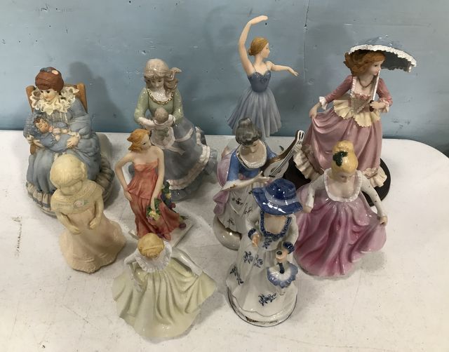 Assorted Collection of Ceramic and Porcelain Lady Figurines, 10 total, 8"h. Assorted Collection of Ceramic and Porcelain Lady Figurines, 10 total, 8"h.