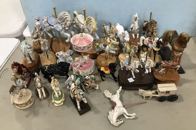 Large Group of Carousel Horse, ceramic and porcelain, some are music boxes, hand painted. Large Group of Carousel Horse, ceramic and porcelain, some are music boxes, hand painted.