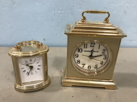 832 Two Small Brass Howard Miller Clocks