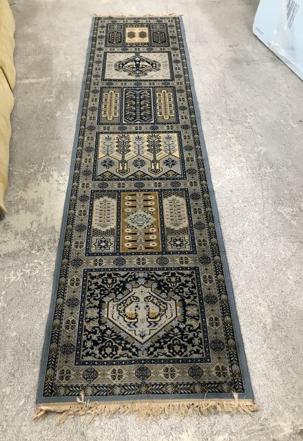 Modern Machine Made Multi Pattern Green Runner, 2.3 x 9' Modern Machine Made Multi Pattern Green Runner, 2.3 x 9'
