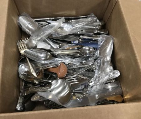 Box Lot of Stainless Flatware, spoons, forks, knives. Box Lot of Stainless Flatware, spoons, forks, knives.