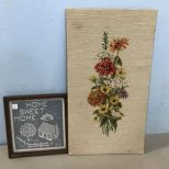 Still Life Flower Needle Point 27"h., 15"w. and Home Sweet Home Sampler Still Life Flower Needle Point 27"h., 15"w. and Home Sweet Home Sampler