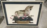 Signed Print of Rocking Horse, matted, framed, 31"h., 41"w. Signed Print of Rocking Horse, matted, framed, 31"h., 41"w.