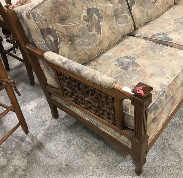 Vintage French Provincial Three Section Sofa, oak, floral upholstery, good condition, 7'. Vintage French Provincial Three Section Sofa, oak, floral upholstery, good condition, 7'.