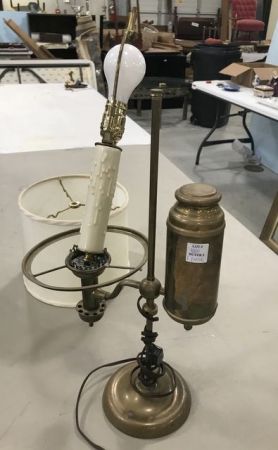 Antique converted oil lamp to electric lamp, needs work, 24"h. Antique converted oil lamp to electric lamp, needs work, 24"h.