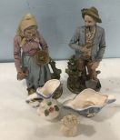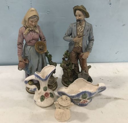 Man and woman ceramic hand painted figurines 14"h., ceramic painted planter, pitcher. Man and woman ceramic hand painted figurines 14"h., ceramic painted planter, pitcher.