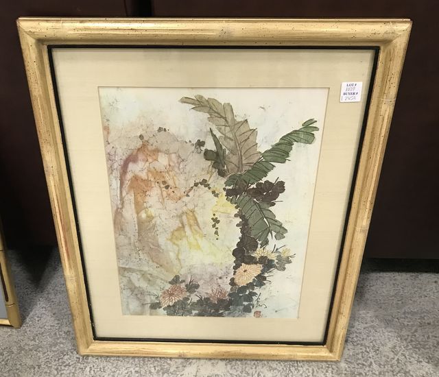 Print of Oriental Block Print, matted, gold gilt framed, 22"h., 18"w. Print of Oriental Block Print, matted, gold gilt framed, 22"h., 18"w.
