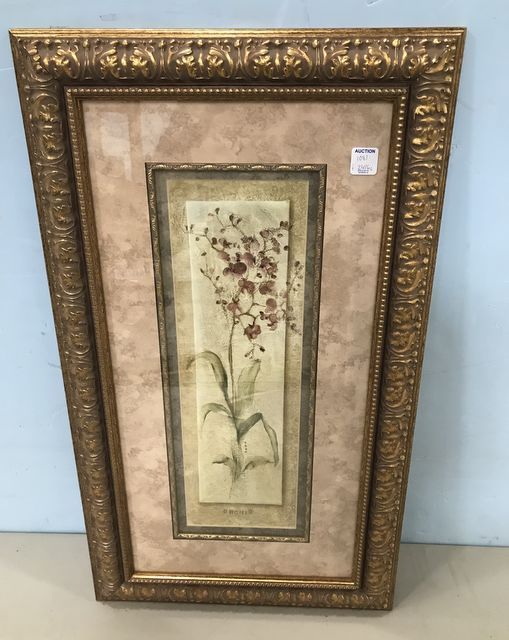 Gold Gilt Framed Orchid Print, matted, glassed, decor,28"h., 16"w. Gold Gilt Framed Orchid Print, matted, glassed, decor,28"h., 16"w.