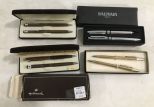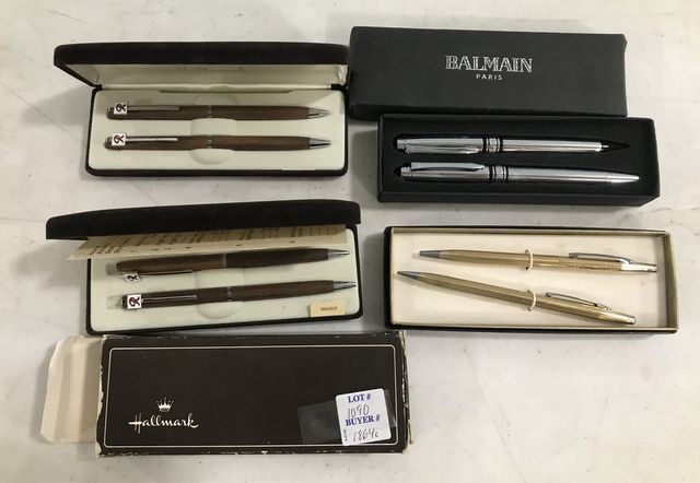 Four Hallmark walnut pens, Balman Paris pens, Bradley writing instruments. Four Hallmark walnut pens, Balman Paris pens, Bradley writing instruments.