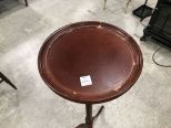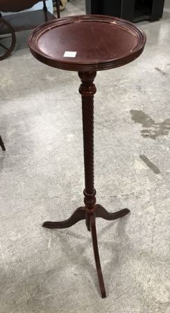 Modern Cherry Pedestal Plant Stand, round top, has wear, 38"h., 11"dia. Modern Cherry Pedestal Plant Stand, round top, has wear, 38"h., 11"dia.