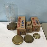 Four Assorted Sized Wolfard Oil Decor Lamps, clear glass shades, comes with oil, tallest is 16"h. Four Assorted Sized Wolfard Oil Decor Lamps, clear glass shades, comes with oil, tallest is 16"h.