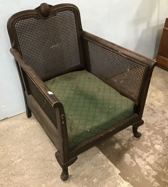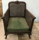 Antique Cane Back and Size Arm Chair, cane has damage spots, needs new cushion, 34"h. Antique Cane Back and Size Arm Chair, cane has damage spots, needs new cushion, 34"h.