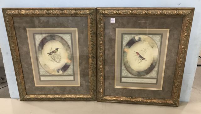 Pair of Bird prints, matted, gold gilt framed, 25"h., 20"w. Pair of Bird prints, matted, gold gilt framed, 25"h., 20"w.