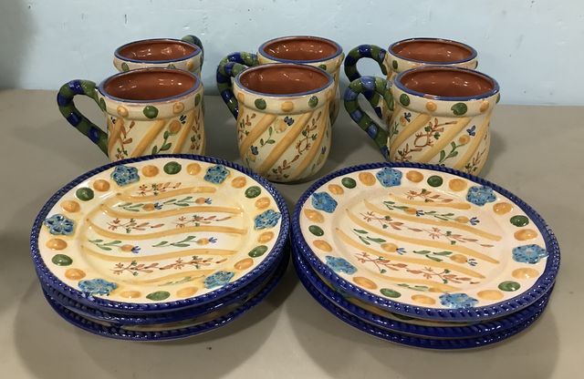 1200 World Bazars Hand Painted Pottery Plates and Mugs