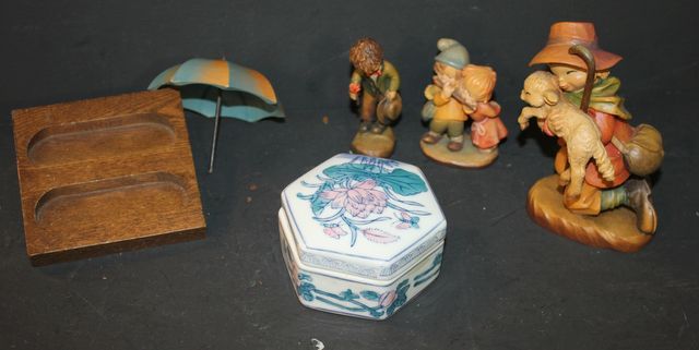 167 "The Good Samaritan" Anri Figurine "The Good Samaritan" Anri Figurine, Porcelain jewelry box, stand, two anri figurines, umbrella.