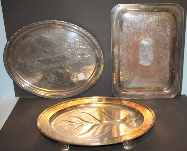 194 Three Silverplate Trays 16" oval, 14" Rectangular, 16" tree of life