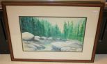 Watercolor of Stream Watercolor of Stream signed Pryse '91 24"h 19"h Watercolor of Stream Watercolor of Stream signed Pryse '91 24"h 19"h