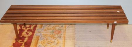 302 Unusual Wood and Brass Coffee Table 59"w, 17"d 15"h
