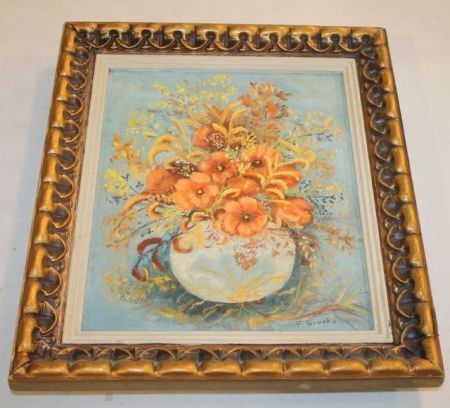 305 Floral Oil Painting Signed F. Brooks 13"w, 15"h