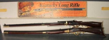 345 Two Davies County Bourbon Kentucky Long Rifle Decanters one in box, 51"L.