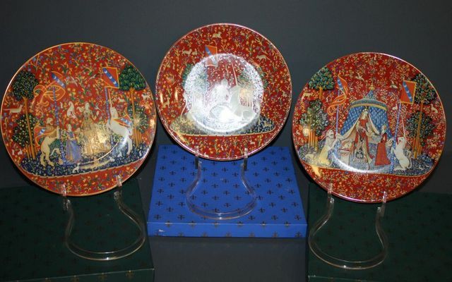 Three Limoges Decorative Plates Three Limoges lady and unicorn limited edition plates 9"dia. Three Limoges Decorative Plates Three Limoges lady and unicorn limited edition plates 9"dia.