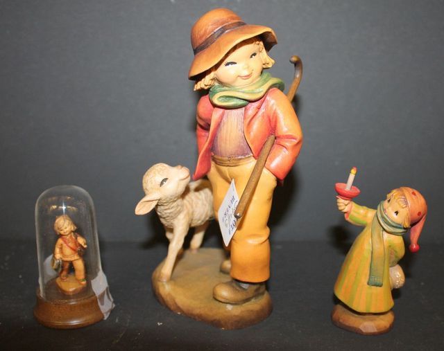 Three Anri Wood Carvings Anri wood carvings "Night Night" 3"h., young boy under dome 2"h., "Admiration" 6"h. Three Anri Wood Carvings Anri wood carvings "Night Night" 3"h., young boy under dome 2"h., "Admiration" 6"h.