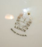 381 Group of Lenox China Compote 6" dia., Centerpiece with dolphins 12"w., and two leaf shape dishes