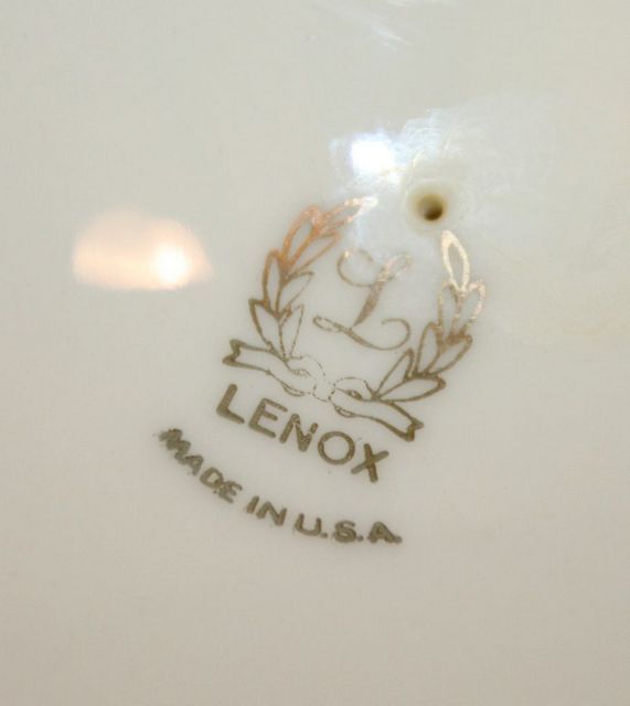 Group of Lenox China Compote 6" dia., Centerpiece with dolphins 12"w., and two leaf shape dishes Group of Lenox China Compote 6" dia., Centerpiece with dolphins 12"w., and two leaf shape dishes