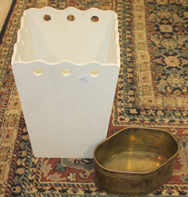 466 Wood Waste Basket and Brass Planter Wood Waste Basket and Brass Planter